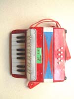 | アコーディオン 中国製のおもちゃですな その名も「英雄」HERO‥なぜに?? 普通のアコより蛇腹の空気送り量が足りないため 以外と弾きにくい |