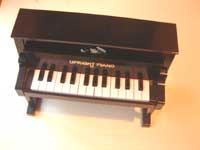 | トイピアノ その1 日本製 「ドレミファど〜なっつ」モデル 今では製造されてない型 どこにもメーカー名は書いてないが、 KAWAIが主流になる前には 一番出回ってたのではないでしょうか おもちゃらしい音が出て良い モノによっては音程が怪しいだが これはかろうじて合ってるので愛用 鍵盤の反応が悪く強めに弾かねばならぬ |