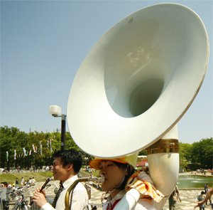 運動会の鼓笛隊のごとき多数の鍵盤ハーモニカ、リコーダー、マーチングスタイルをトレードマークとしつつも、